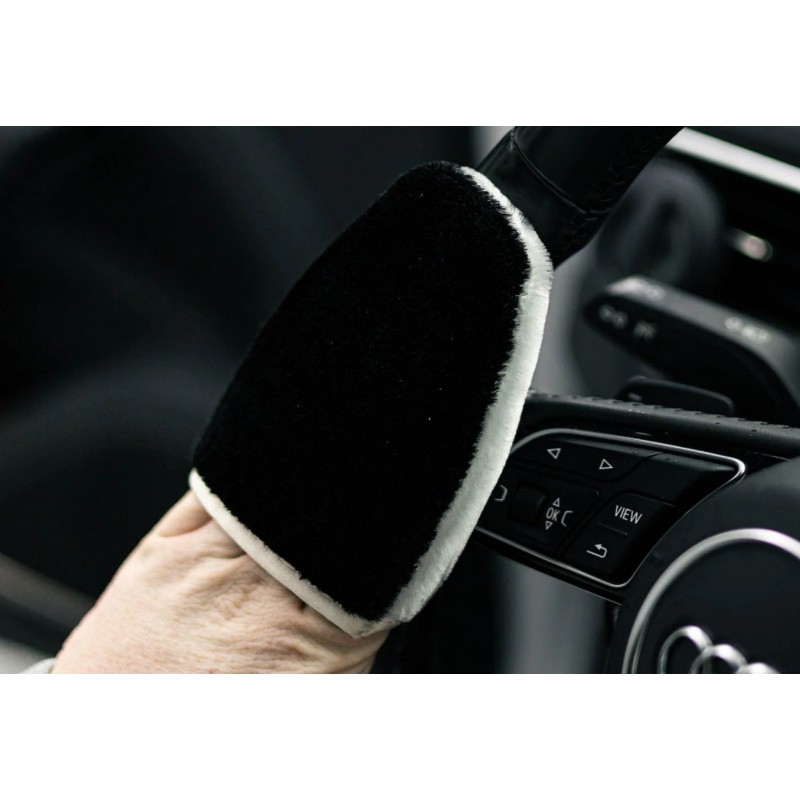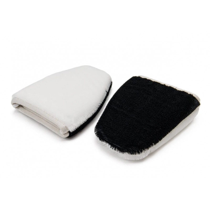Scrub interior vehicle surfaces like plastic, leather & vinyl clean with the brush-like, bristle-type nylon material. The firm but gentle fibers scrub deep into surface pours and contours. The black and white sides are the same material and can be used for tracking which side you used. Use this car interior scrubber with your favorite cleaner and wipe away residue with a clean microfiber towel. The small mitt size fits on a few of your fingers and can reach into tight spots like panel seams or cup holders.