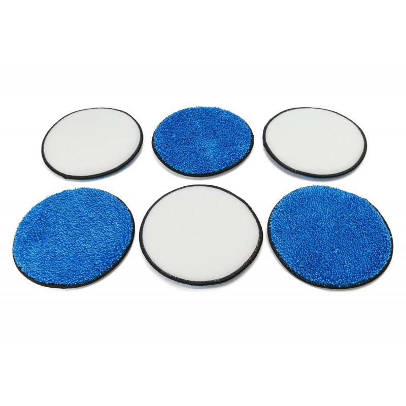 UFO Pads are designed to work with orbital, sander, and polisher tools, or by hand with a strap, for cleaning upholstery, fabric, and carpet. Use your favorite soap or cleaner and agitate the surface as stains and filth are lifted and removed from the material. Use on a low to medium speed in a circular pattern, always moving. Never stop movement with a machine as excessive heat can cause damage.
