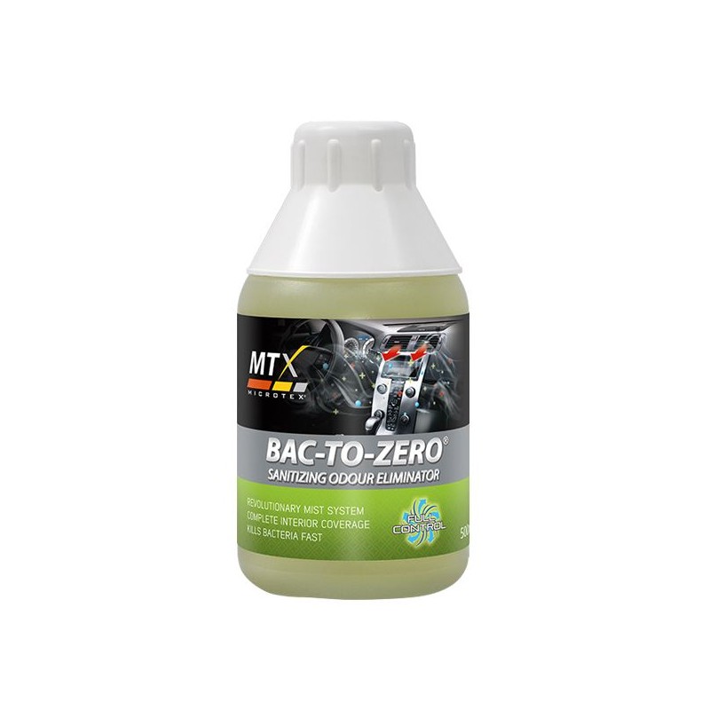 BAC-TO-ZERO® Full Control is a revolutionary process of eliminating odours, germs and bacteria in one simple step. It works by creating a mist that envelops the entire interior of the vehicle with our proprietary formula. It removes odours right in its the source by eliminating molds and bacteria, attacking them and slowly breaking down their chemical composition and starving it of neccessary oxygen before it can multiply. BAC-TO-ZERO® works very well with air-conditioning systems because it can circulate with the natural air flow of the system.