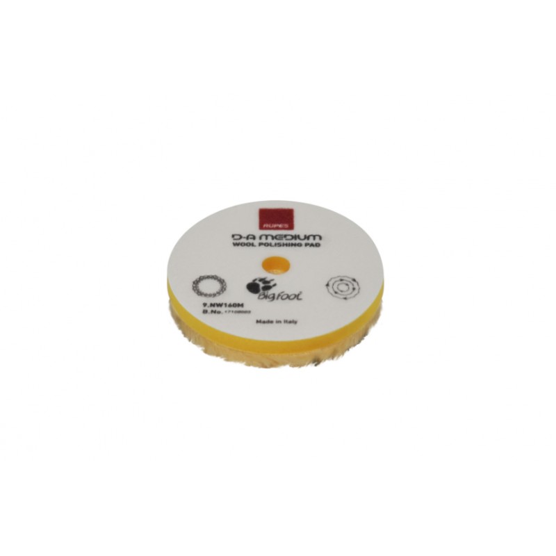 Within the range of yellow medium wool pads, a uniform 15mm fiber length is maintained across the entire surface of the pads. This combination of soft and flexible wool, along with a gentle yellow foam backing, ensures not only effective removal of moderate defects but also excellent finishing results on a variety of surfaces.